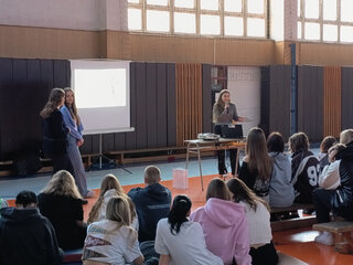 V piatok 6.3. 2026 našu školu navštívili študentky z Fakulty riadenia a informatiky Žilinskej univerzity v Žiline (FRI UNIZA). Našim štvrtákom v rámci pútavej prednášky priblížili možnosti štúdia, jednotlivé študijné programy a výhody, ktoré fakulta svojim študentom ponúka. Veríme, že tieto informácie z prvej ruky pomôžu našim budúcim maturantom pri dôležitom rozhodovaní o ich ďalšom smerovaní a výbere vysokej školy.