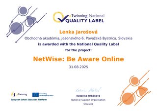 4. Naša škola získala 5 eTwinning Národných certifikátov kvality!