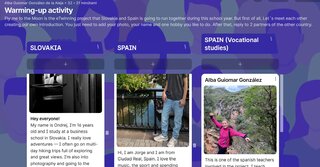 Ako prvú aktivitu vybrali zoznamovanie sa študentov prostredníctvom krátkych profilov na Padlete. Tu budú vzájomne komunikovať, aby sa o sebe dozvedeli viac detailov.